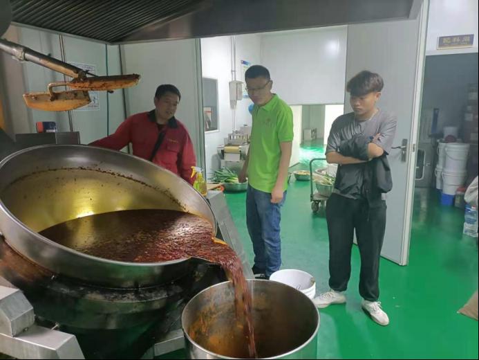 随后豆老师带领大家进入生产车间进行深度交流学习,处在生产第一线,豆老师带领大家首先回顾了课堂上所讲授的香精香料生产流程,然后针对生产实际,进行了现场教学,让同学们真正感受到了香精香料的实地生产,并针对生产加工中经常遇到的难题进行了探讨,并当场解决企业生产中遇到的问题,获得了企业的大力赞扬和同学们的认同。