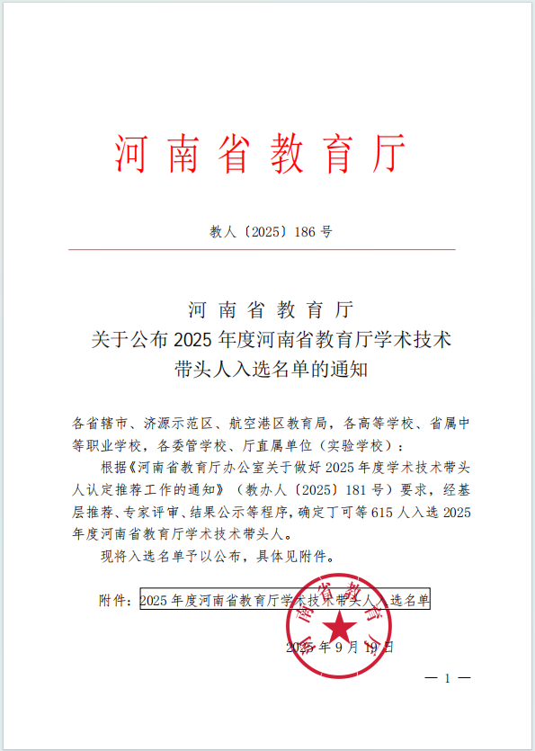 近日,河南省教育厅发布了《河南省教育厅关于公布2025年度河南省教育厅学术技术带头人入选名单的通知》[教人〔2025〕186 号],贝博官网教师孙留霞成功入选。