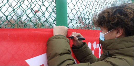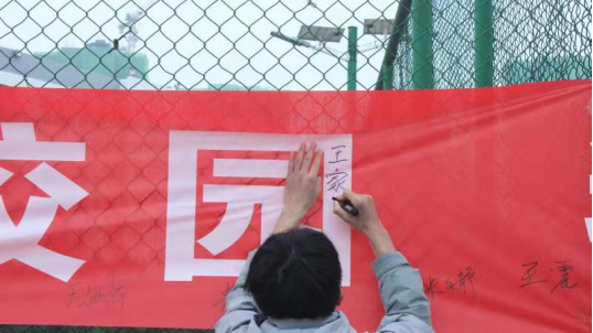 宣誓完毕后,以李书记为表率带领全体师生在横幅上签字。