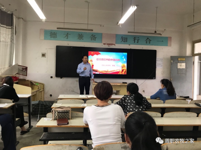 疫情尚未结束,所有党员一直在行动。为了进一步突出党员干部的先锋模范作用,把率先垂范落到实处,体现中国精神的担当。6月17日下午15:00,艾弗森贝博ballbet官网党总支在六区教室开展了“支部书记讲党课”活动。艾弗森贝博ballbet官网总支书记李民以“疫情防控中的中国精神”为题,给全体党员讲党课,深入推进“两学一做”学习教育。